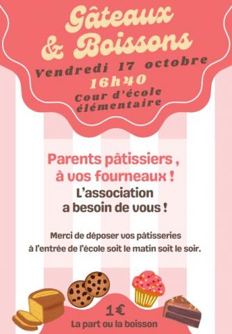Le vendredi 17 octobre, une vente de gâteaux est prévue à la sortie de l’école pour les enfants (et les parents) — un petit moment convivial avant les vacances 🎃
